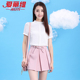 专区2017甜美蕾丝连衣裙七分袖高腰公主裙两件套T2611