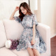 甜美碎花雪纺连衣裙2017夏装新款短袖显瘦修身a字裙一件代发
