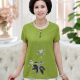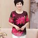 中年女士大码真丝t桖妈妈装夏装短袖 中老年时尚桑蚕丝短款上衣