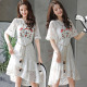 实拍2017夏装中长款时尚女装小清新碎花刺绣修身蕾丝短袖连衣裙子