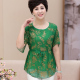 新款中老年女装夏装真丝T恤夏季短袖绣花中年女装时尚妈妈装上衣