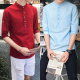 中袖衬衫韩版男士棉麻五分袖衬衣夏装潮流时尚半袖衬衫