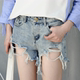 金富客新款春夏女装破洞牛仔裤女短裤高腰修身直筒毛边热裤韩版