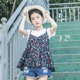 13良品小夏女荷叶边碎花雪纺衫上衣两件套吊带背心木耳边短袖体恤
