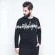 VHITOSUN英伦风大码男装 秋季个性凌乱音符印花长袖T恤