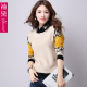 2016秋冬韩版圆领长袖套头撞色毛衣针织衫打底衫宽松显瘦女装上衣