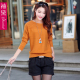 纯色T恤衫女夏季七分袖套头针织衫宽松短款上衣春秋冰丝打底衫女