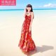 沙滩裙夏海边度假波西米亚连衣裙长款女吊带显瘦海滩印花雪纺长裙