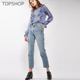 TOPSHOP女士裤口磨毛装饰七分牛仔裤02C56JMDT