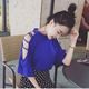 春夏新款露肩性感上衣修身长袖打底衫韩范百搭复古纯色气质T恤仙