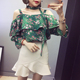 2017春季新款宽松百搭拼接格子假两件t恤女长袖露肩显瘦潮流上衣