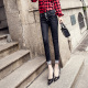 高腰排扣黑色牛仔裤韩版修身显瘦弹力九分裤卷边紧身小脚铅笔裤女