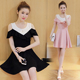 2017夏季新款韩版修身收腰荷叶边半身裙露肩吊带连衣裙A字裙女