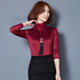 真丝拼接网纱打底衫秋装新款韩范长袖堆堆领上衣大码修身显瘦小衫