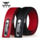 铁曼力红色女士皮带真皮平滑扣 本命年鸡年纯牛皮红腰带头层牛皮