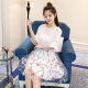 2017夏季新款女装连衣裙短袖两件套印花欧根纱半身短裙雪纺套装