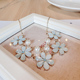 粉妆简约个性新款气质花朵珍珠毛衣链短款百搭甜美项链时尚饰品女