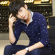 奶牛的梦夏装新款男士修身时尚休闲印花男士短袖翻领T恤#D385