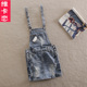 维卡恋背带牛仔短裙女弹力半身裙吊带破洞连体背带裙女装牛仔裙夏