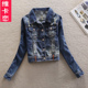 维卡恋春秋破洞韩版潮女装长袖牛仔外套女短款夹克 短外套牛仔衫