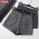 韩版格子高腰显瘦阔腿短裤女秋冬 A字外穿加厚休闲百搭呢子靴裤子