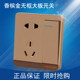 86型墙壁开关插座面板香槟金色5五孔二三插圆形家用电源插座面板