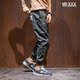 日系死飞高街小脚束脚裤欧美复古迷彩深色工装裤潮牌牛仔拼接长裤