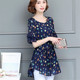 天天特价中袖2017春夏新品水墨印花宽松五分袖荷叶边裙摆遮腹上衣