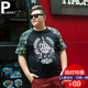 大码男装夏装男士短袖T恤 潮胖子加肥加大碎花拼接圆领半袖体恤