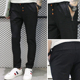 2016夏季新品韩版修身 9分裤青少年小脚裤休闲织带装饰时尚潮男黑
