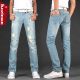 Kuziman新款 韩版小直筒修身纯色 破洞浅色牛仔裤牛仔长裤子潮男