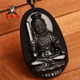 开光磨砂天然黑曜石普贤菩萨吊坠生肖龙蛇守护神本命佛男女款项链