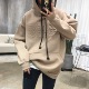 韩国东大门代购17春装新款中长款宽松套头bf字母白色连帽卫衣女