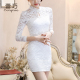 蕾丝连衣裙2016秋装新款女装修身白色上衣中长款蕾丝打底衫女长袖