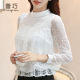 立领蕾丝打底衫长袖2017春秋装新款白色性感时尚镂空蕾丝女士上衣