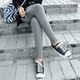 春秋韩版打底裤女外穿 纯棉高腰灰色小脚裤女 显瘦紧身九分长裤子