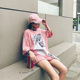 2017春夏新款个性彩色领子圆领字母飘带印花宽松T恤前后可两穿