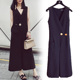 2017夏季新款韩版潮V领气质金扣连体裤女背带连衣裙裤九分阔腿裤