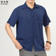 父亲夏装中老年人男士亚麻短袖衬衫夏季爸爸装中年男装休闲衬衣薄
