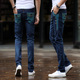 2017春季男式牛仔长裤子 弹力小直筒修身拼接小脚青少年裤子 潮