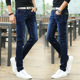 秋冬季男士牛仔裤男潮青少年学生男裤韩版修身小脚弹力牛仔长裤厚