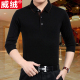 中年男士长袖T恤男翻领纯色商务针织衫中老年男秋款爸爸装长袖t恤