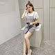 2017新款韩版夏装女气质显瘦字母连衣裙套装时尚裙装修身两件套潮