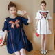 孕妇装夏季新款韩版刺绣棉麻中袖孕妇连衣裙娃娃裙五分袖上衣春装