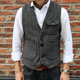 潮牌阿美咔叽复古粗花呢西装马甲男秋冬修身V领羊毛马甲背心短款