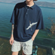 欧美高街嘻哈港风复古BF风宽松大码oversize短袖T恤情侣潮男女tee