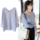 2016秋装新款韩国学院风衬衣女V领露背上衣学生宽松百搭长袖衬衫