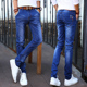 夏季薄款牛仔裤男土小脚裤青少年修身显小腿男士深色长裤学生百搭