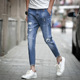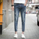 夏天卷边收腿9分裤男小腿破洞牛仔裤男土夏季翻边修身九分小裤脚