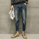 夏季破铜系带牛仔裤男土九分裤束脚收口缩脚裤子男修身韩版9分裤